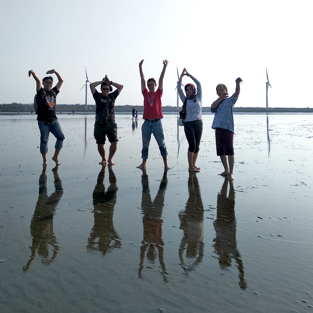 我们好像孩子般兴奋的踩着水,踏着泥。